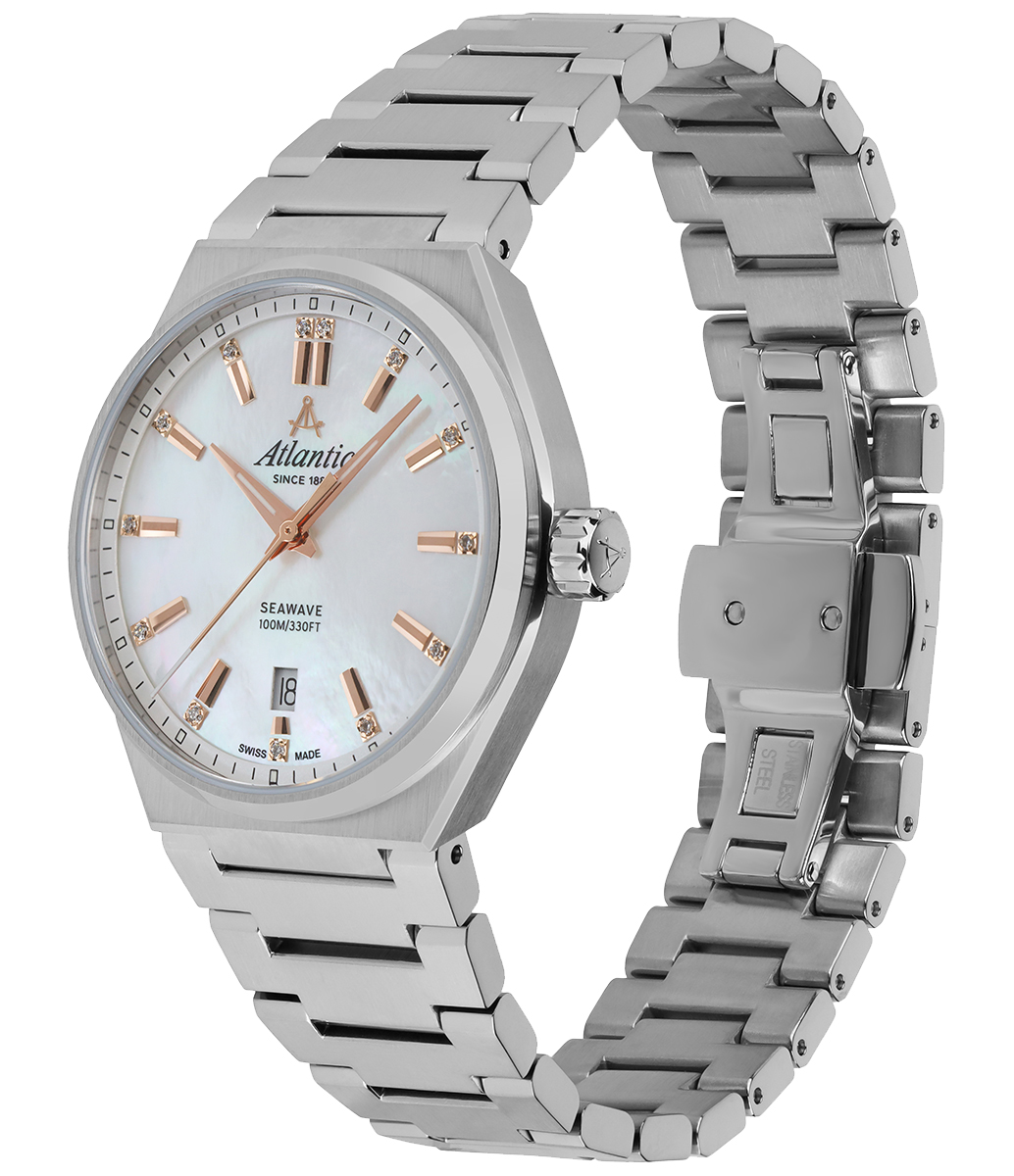 Zegarek Atlantic 39365.41.01R to harmonijne połączenie srebrnej elegancji, nowoczesnej technologii i subtelnego luksusu. Klasyczna forma wzbogacona o tarczę z masy perłowej oraz bransoleta ze stali szlachetnej sprawia, że jest to propozycja dla kobiet ceniących styl, jakość i praktyczność. Dodatkowym atutem modelu jest wodoszczelność 100 m, która czyni go zegarkiem zarówno eleganckim, jak i funkcjonalnym.