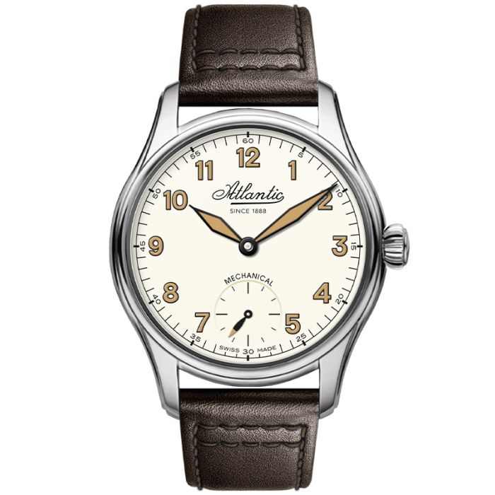 Jak przystało na szwajcarski zegarek, Atlantic 52952.41.93 może pochwalić się świetnym wykonaniem i materiałami za najwyższej półki. Wyposażono go w polerowaną kopertę ze stali szlachetnej, której klasyczne kształty przywodzą na myśl zegarki z dawnych lat. W kopertę wprawiono wypukłe szkło szafirowe, z obu stron pokryte warstwą antyrefleksyjną dla lepszego czytania tarczy przy dużym nasłonecznieniu. Z kolei tarcza zegarka bardzo wyraźnie nawiązuje do stylu vintage: indeksy arabskie, wskazówki nawiązujące do stylu leaf i klasyczne logo Atlantic. Całość domyka wygodny pasek skórzany z zapięciem motylkowym.
