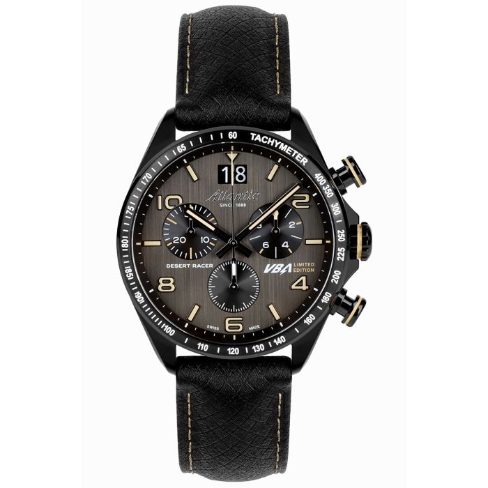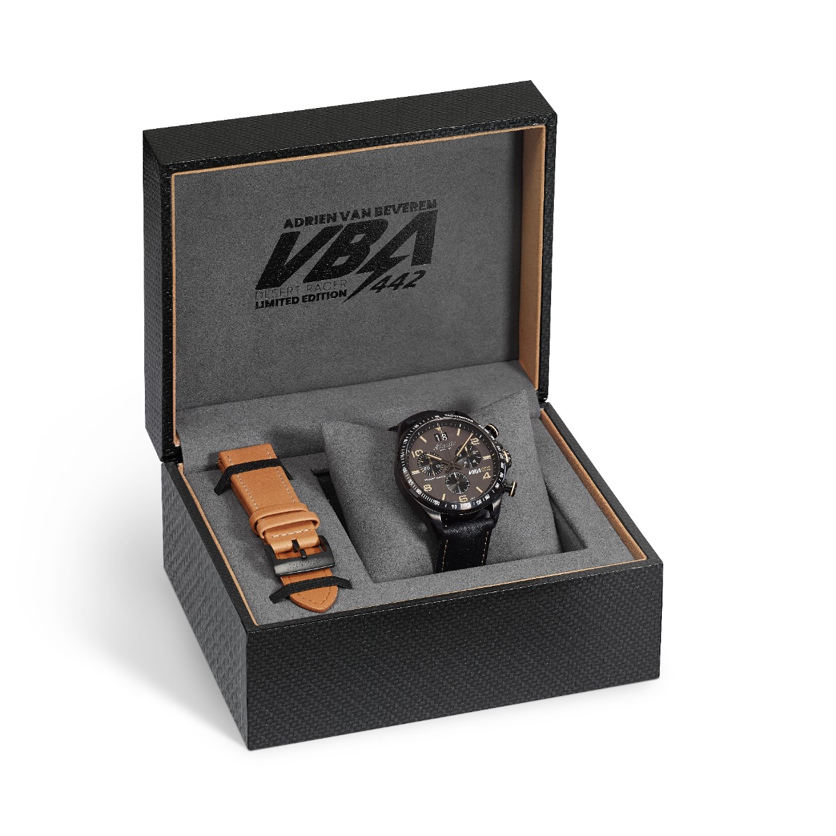 Atlantic Desert Racer VBA 442 Limited Edition to wyjątkowy, limitowany zegarek męski, zaprojektowany dla miłośników prędkości, stylu i precyzji. Inspirowany legendarnymi rajdami pustynnymi, łączy w sobie sportowy charakter, szwajcarską technologię i elegancki design. Każdy egzemplarz to część numerowanej edycji, co czyni go unikatem kolekcjonerskim. To zegarek, który wyróżnia się w tłumie — stworzony dla mężczyzn, którzy wiedzą, czego chcą. Zegarek ten stanowi hołd dla niezwykle zdeterminowanego zawodnika – Adriena Van Beverena, znanego z niezłomnej pasji, dyscypliny i legendarnego numeru 442, który na zawsze wpisał się w historię rajdów pustynnych.