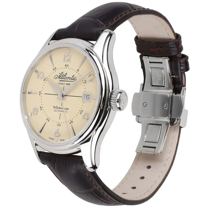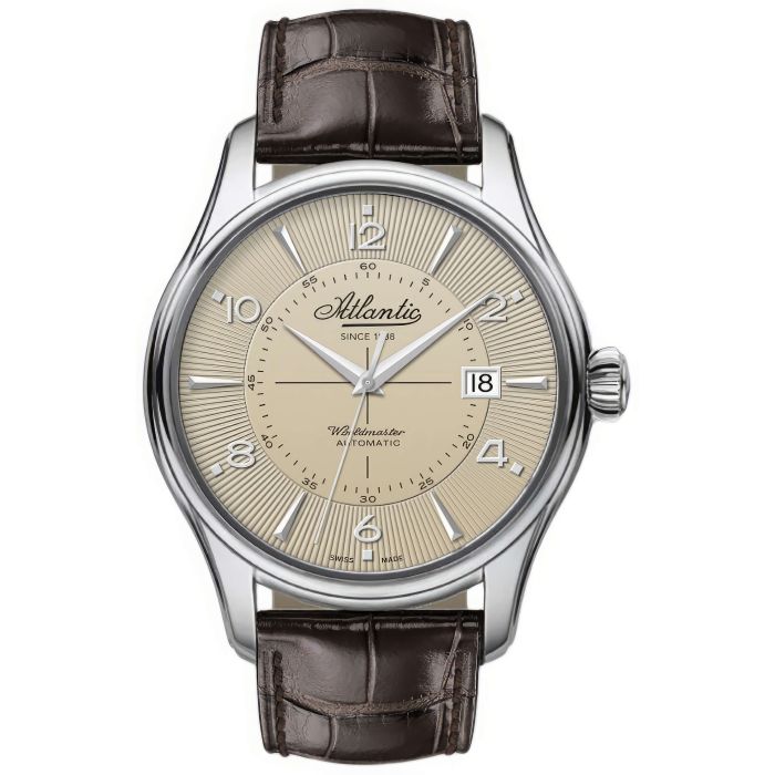 Beżowa kolorystyka przecięta elementami srebra to wyróżnik męskiego modelu z serii Worldmaster - Atlantic 55750.41.95S. Klasyczny charakter zegarka podkreśli każdy element Twojego stroju - zarówno formalnego, jak i codziennego.