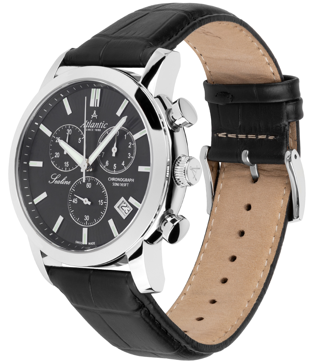 Sercem tego klasycznego zegarka męskiego jest szwajcarski mechanizm kwarcowy, który zapewnia doskonałą precyzję działania. Atlantic Sealine Chronograph 62450.41.61 został dodatkowo wyposażony w stoper oraz praktyczny datownik, co zwiększa jego funkcjonalność. Taki zestaw sprawia, że model ten świetnie sprawdzi się w codziennych sytuacjach – od pracy biurowej po aktywności sportowe.