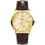 Linia Seaway to nowość z kolekcji 2015/2016 prezentowana przez markę Atlantic - szwajcarskiego producenta z ogromnymi tradycjami. Atlantic Seaway 63360.45.31 charakteryzuje się złotym cyferblatem oraz brązowym, skórzanym paskiem. Kopertę o średnicy 41 mm wykonano z wysokiej jakości stali nierdzewnej, która jest odporna na działanie warunków atmosferycznych. Połączono ją z paskiem z naturalnej skóry, dzięki temu doskonale prezentuje się na męskim nadgarstku. Estetyczne wykonanie podkreśla jakość i prestiż tego modelu. W tym modelu zastosowano szkło szafirowe, które jest odporne na zarysowania - zapewnia to estetyczny wygląd przez cały czas użytkowania. Tarcza w tym modelu została ozdobiona pionowymi prążkami oraz ręcznie nakładanymi indeksami. Zegarek otrzymał wysokiej klasy szwajcarski mechanizm kwarcowy z oddzielną wskazówką sekundową oraz dużym podwójnym oknem datownika umiejscowionym na godzinie 12. Datownik wskazuje dzień miesiąca. Wodoszczelność 100m pozwala na swobodny kontakt z wodą, np. pływanie (natomiast skórzany pasek po kontakcie z wodą może ulec zniszczeniu).
