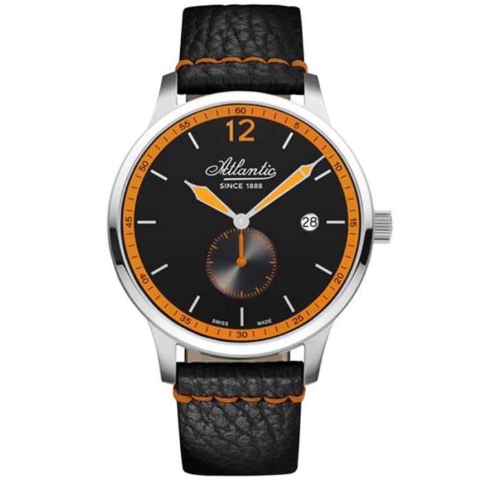 Wyjątkowy zegarek męski Atlantic Speedway 68352.41.62O nawiązujący swoim wyglądem do tradycji motoryzacyjnej. Idealnie prezentuje się na męskim nadgarstku dzięki doskonale wyważonym proporcjom. Estetyczne wykonanie podkreśla jakość i prestiż tego modelu. Został wykonany z wysokiej jakości stali szlachetnej, dzięki czemu jest odporny na korozje i uszkodzenia. Średnica koperty to 42 mm. Szkło szafirowe jest odporne na zarysowania, co zapewnia nam estetyczny wygląd zegarka przez cały czas użytkowania. Do tego modelu został założony grafitowy pasek skórzany wysokiej jakości. Czarna tarcza została oznaczona wyraźnymi indeksami. Wodoszczelność tego modelu jest bezpieczna dla powierzchownych czynności z wodą np. prysznic, ale nie do głębokiego zanurzania. Mechanizm kwarcowy otrzymał dodatkową funkcję datownika, który wskazuje dzień miesiąca.