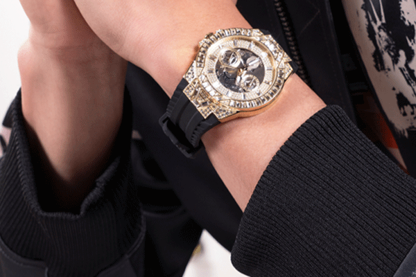 Druga seria tegorocznych nowości, New Royalty, jest doskonałym dowodem na to, że połyskujące zdobienia nie są dedykowane wyłącznie paniom. Takie rozwiązania stylistyczne są coraz częściej spotykane w kolekcjach męskich zegarów takich marek jak Hublot, Rolex, czy też Bulova. New Royalty potwierdza, że „nasycone” cyrkoniami zegarki Guess mogą być jednocześnie ozdobne i męskie.