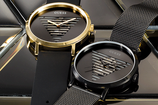 Motywem przewodnim trendu Monogram jest trójkąt – charakterystyczny element legendarnego logo marki Guess. Projektanci ograniczyli rozwiązania stylistyczne w zegarkach Monogram do minimum, co w połączeniu z czarno-złotą kolorystyką nadaje im ponadczasowego charakteru. Męskie zegarki Monogram reprezentują modele GW0502G1, GW0502G2 oraz GW0503G1.