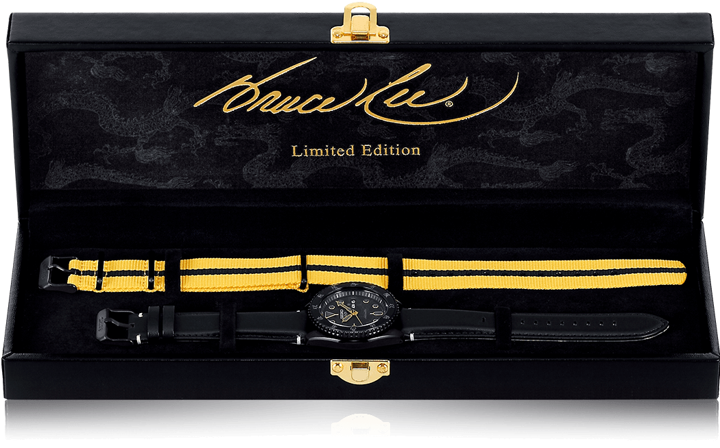 Na tarczy zegarka Seiko 5 Sports przedstawiony jest smok, którego narysował sam Bruce Lee. Sygnatura znajdująca się na bezelu oddaje ducha Jeet Kune Do, frazy, która tłumaczy się jako "Używanie żadnej drogi jako drogi; nieposiadanie ograniczenia jako ograniczenia".