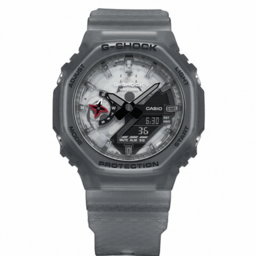 Zegarek męski G-Shock GA-2100NNJ-8AER inspirowany jest techniką kul ognia Katon no Jutsu. Technika ta polega na rozpraszaniu wroga dymem.