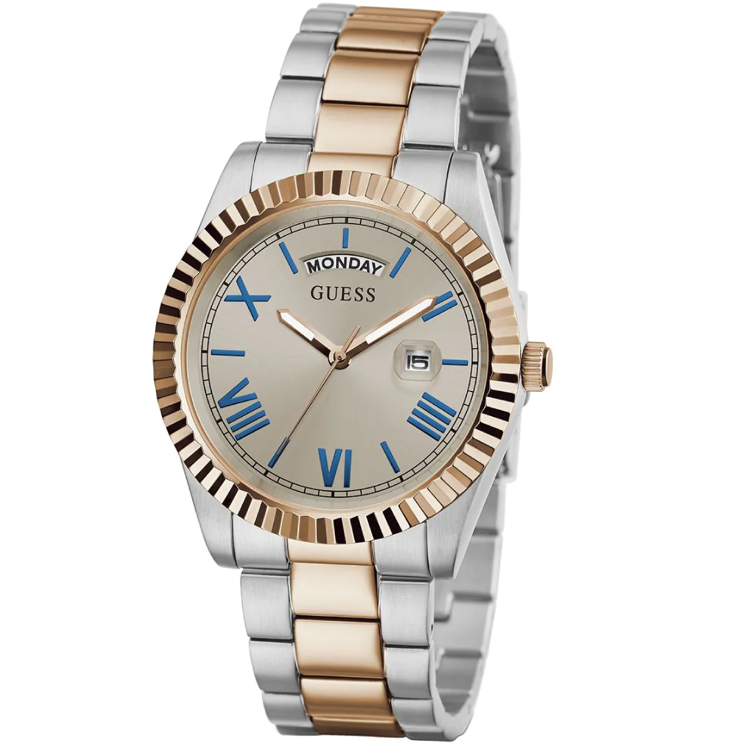 Zegarki, które z łatwością wpisują się zarówno w codzienne stylizacje, jak i bardziej formalne okazje, co stanowi uniwersalne uzupełnienie męskiej garderoby. Przykładem jest model GUESS Connoisseur GW0265G13 — definicja męskiej elegancji. Stalowa koperta, elegancka bransoleta w odcieniach różowego złota i odporność na zachlapania (50 m) czynią z niego świetnego towarzysza codziennych aktywności.