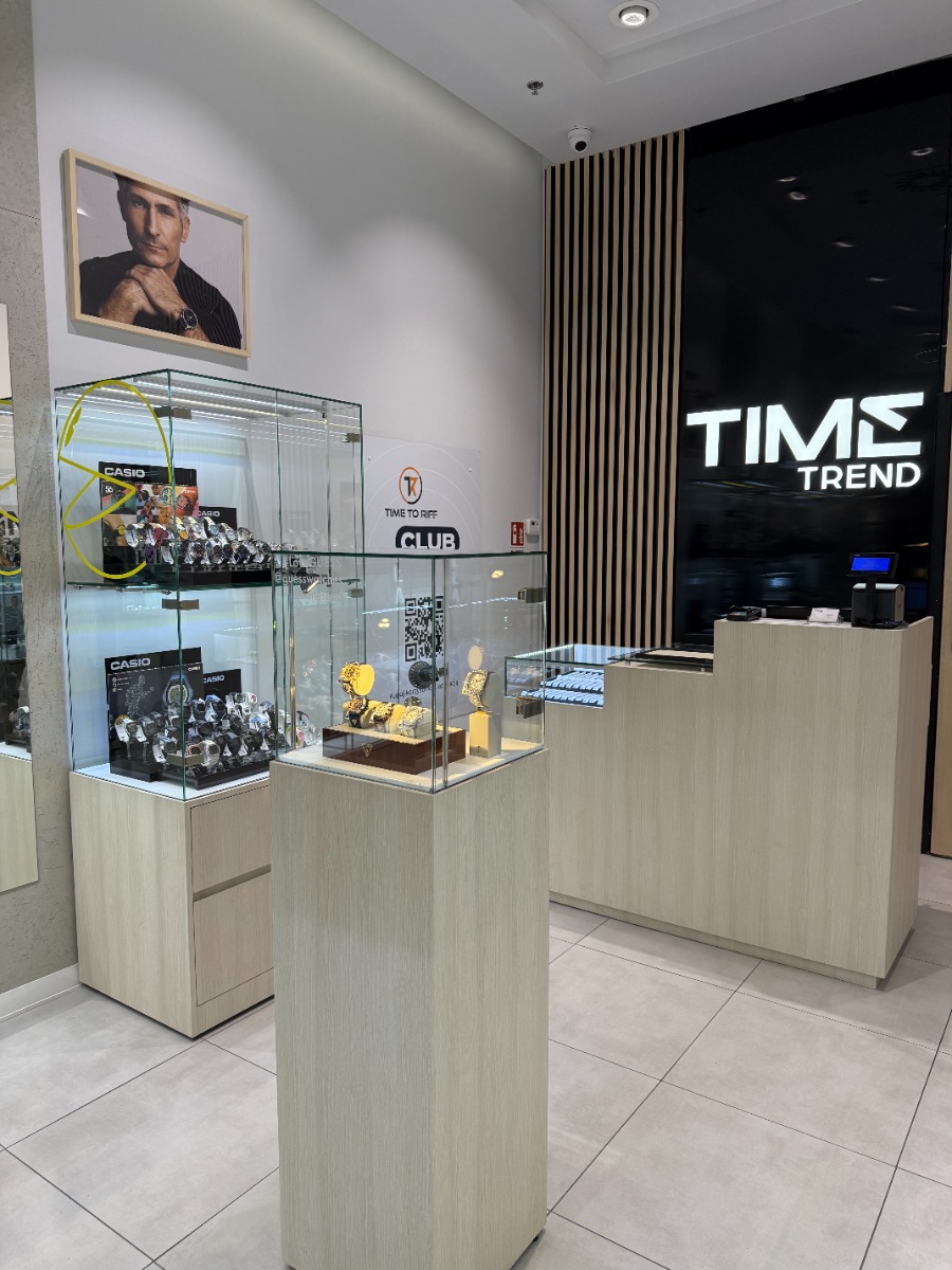 Salon Time Trend we Wroclavii przeszedł spektakularną metamorfozę w grudniu 2024 roku, stając się jednym z najnowocześniejszych punktów sprzedaży w Polsce. Nowy wystrój zachwyca elegancją, funkcjonalnością i świeżością – wnętrze zaprojektowano tak, by zapewnić komfort zakupów oraz maksymalną ekspozycję dostępnych modeli. Dominują nowoczesne materiały i odpowiednio dobrane oświetlenie, które eksponuje zegarki w ciekawym stylu.