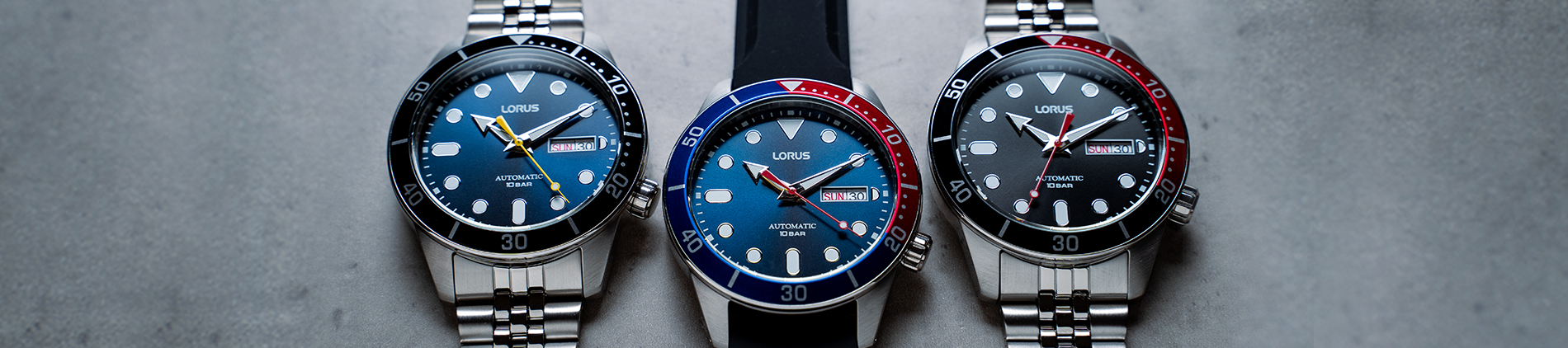 Kolekcję wyróżnia sportowy charakter, inspirowany funkcjami zegarków diver. Koperta zegarków wykonana jest ze stali szlachetnej o rozmiarze 43mm. Na tarczy zegarka znajduje się podwójny datownik wskazujący datę i dzień tygodnia. Lorus proponuje nam dwa warianty tego modelu - z dodającą elegancji bransoletą typu Jubilee oraz z miękkim i przyjemnym w chwycie paskiem silikonowym, nadającym jeszcze bardziej sportowego charakteru. Wodoszczelność na poziomie 10 BAR pozwala na swobodne pływanie w zegarku. Zegarek wyposażono w japoński mechanizm automatyczny Seiko Y676.