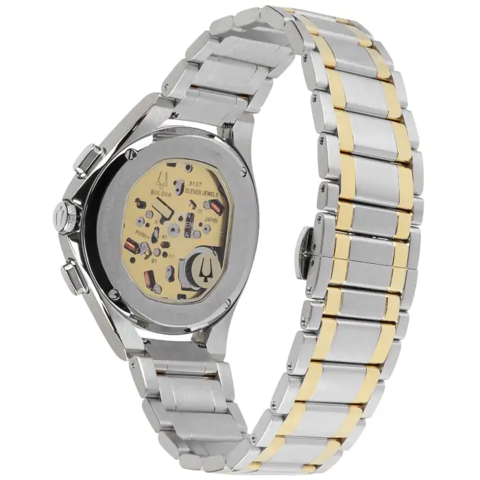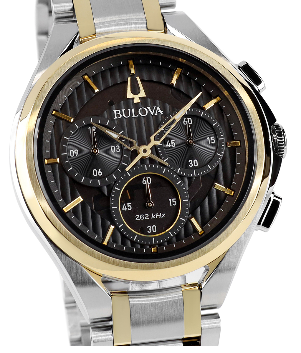 Bulova Curv 98A301 wyposażony jest w innowacyjny, zakrzywiony mechanizm, który zapewnia niezawodność i precyzję. Dzięki technologii kwarcowej o częstotliwości 262 kHz, ten zegarek oferuje wyjątkową dokładność czasu. Dual mode można aktywować za pomocą przycisku na godzinie 4, umożliwiając praktyczne korzystanie z funkcji chronografu.