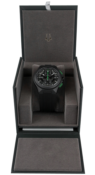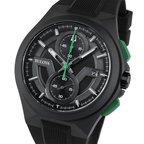 Bulova Maquina 98B381 to dynamiczny zegarek męski o sportowym stylu, pochodzący od renomowanej amerykańskiej marki Bulova.