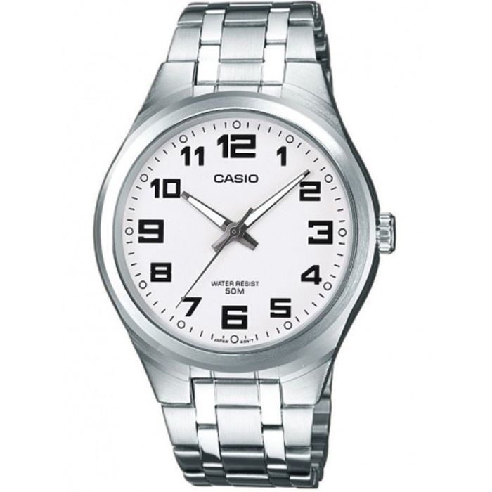 CASIO Collection Men MTP-1310D-7BVEF to prosty i czytelny zegarek męski o klasycznym kształcie i rozmiarze. Mosiężna koperta o średnicy 39 mm została połączona z bransoletą ze stali nierdzewnej. Potrójne, składane zapięcia zapobiega przypadkowemu zagubieniu zegarka. Jasna tarcza została czytelnie oznaczona cyframi arabskimi. Wskazówki z warstwą luminescencyjną umożliwiają odczytanie godziny w ciemności. Dokładny czas wskazuje niezawodny japoński mechanizm kwarcowy. Wodoszczelność 50m chroni ten model pod prysznicem lub podczas pływania (bez zanurzeń).
