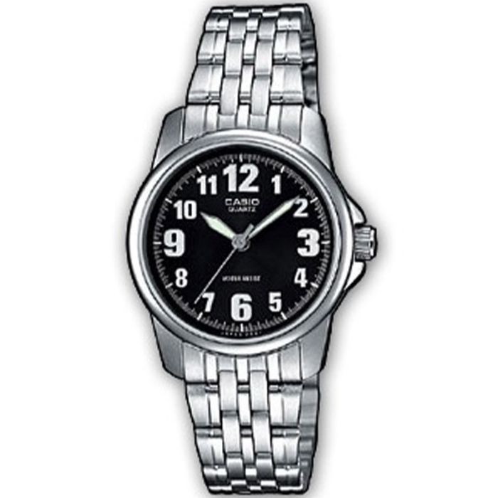 CASIO Collection Women LTP-1260D-1B to prosty, klasyczny zegarek z dokładnym mechanizmem kwarcowym. Jego mosiężna koperta została połączona ze stalową bransoletą, odporną na korozję. Czarny cyferblat czytelnie oznaczono jasnymi cyframi. Dzięki temu bez problemu można odczytać na nim godzinę. Wodoszczelność tego modelu pozwala jedynie na niewielkie zachlapania.