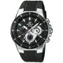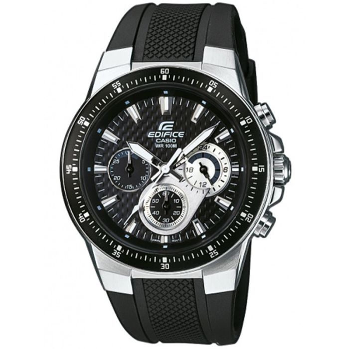 CASIO Edifice Classic EF-552-1AVEF to model przeznaczony dla mężczyzn poszukujących stonowanego, ale jednocześnie sportowego zegarka o wyjątkowym designie, gdzie dopracowanie szczegółów w harmonijny sposób łączy się z najnowszą technologią. Koperta została wykonane z wysokiej jakości stali nierdzewnej, która charakteryzuje się wysoką odpornością na warunki atmosferyczne. Połączono ją z wygodnym paskiem w czarnym kolorze wykonanym z tworzywa sztucznego. Na ciemnej tarczy umieszczono elementy pokryte warstwą Neobrite, dzięki czemu możliwy jest odczyt wskazań w ciemnościach. Zegarek wyposażono w stoper z dokładnością pomiaru do 1/1 sekundy i zakresem pomiaru do 30 min. Precyzyjny mechanizm kwarcowy jest zasilany baterią, która przy standardowym użytkowaniu zapewnia pracę przez okres 2 lat. Wodoszczelność 100M i zakręcany dekiel pozwalają na swobodny kontakt z wodą.