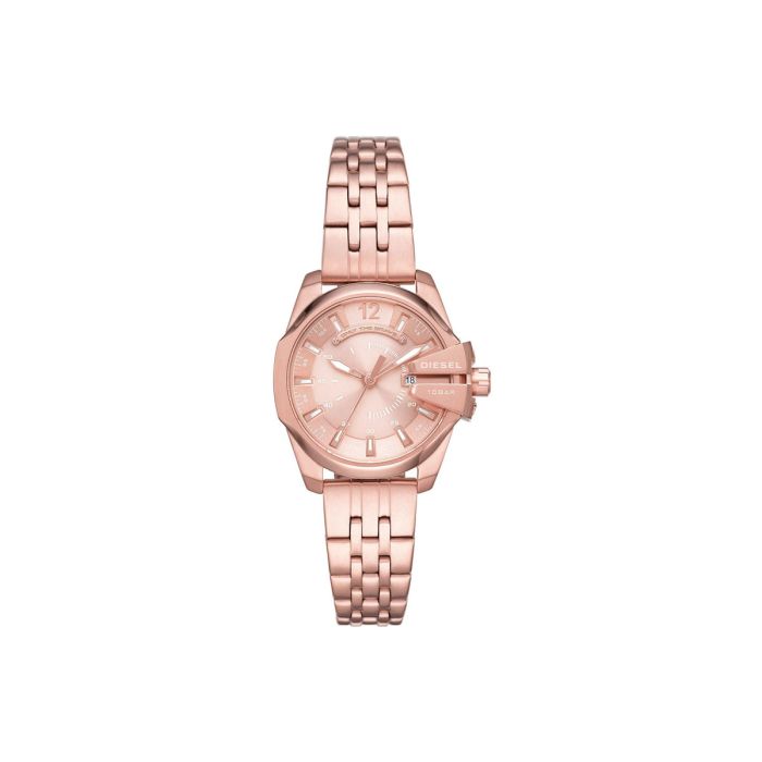 Diesel DZ1952 to ciekawa propozycja dla kobiet szukających solidnego i eleganckiego czasomierza z charakterem. Wykonane ze stali szlachetnej koperta oraz bransoleta tworzą spójną kompozycję, która pasuje do oficjalnego stroju i jednocześnie świetnie sprawdzi się na co dzień. Na godzinie 3 znajduje się praktyczny datownik wskazujący aktualny dzień miesiąca, który przypomni nam o ważnych wydarzeniach. Tarcza tego modelu jest bardzo czytelna i przejrzysta, a umieszczone na niej wskazówki oraz indeksy precyzyjnie wskazują godzinę. W modelu zastosowano mechanizm kwarcowy zasilany baterią. Całość przykrywa wytrzymałe szkło mineralne, które charakteryzuje się wysoką odpornością na stłuczenia. Wodoszczelność 100M pozwala na pływanie bez konieczności zdejmowania zegarka z nadgarstka.