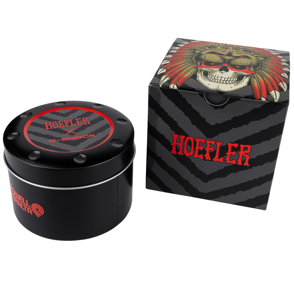 Ten męski G-shock ma pasek z tworzywa sztucznego, który jest elastyczny i wygodny w noszeniu. Pasek ten ma oryginalną grafikę Kelvina Hoeflera, która nawiązuje do jego techniki i umiejętności na deskorolce. Wyświetlacz zegarka jest cyfrowy, cechujący się doskonałą czytelnością. Ma również podświetlenie Super Illuminator, które zapewnia dobrą widoczność nawet w ciemności. Po włączeniu podświetlenia można zobaczyć czerwone logo Powell Peralta, które jest symbolem jednej z najbardziej znanych i wpływowych marek deskorolkowych na świecie.