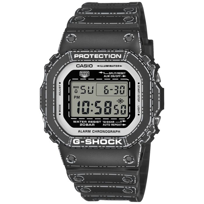 Koperta o szerokości 42 mm, wykonana z wytrzymałej żywicy, zapewnia legendarną odporność G-Shocka na wstrząsy i uderzenia. Zarówno bezel, jak i czarna bransoleta zostały wykończone fakturą inspirowaną papierem washi, a subtelne linie nawiązujące do zgięć origami podkreślają artystyczny charakter modelu. Dodatkowym detalem kolekcjonerskim jest symbol żurawia umieszczony na deklu koperty, który wzmacnia limitowany status zegarka.