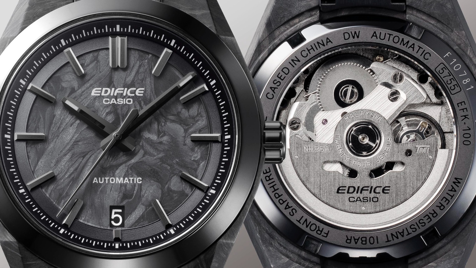 CASIO EDIFICE EFK-100XPB-1AER to nowoczesny zegarek dla mężczyzn ceniących techniczną precyzję, sportowy styl i najwyższą jakość wykonania. To pierwszy model Casio EDIFICE wyposażonych w mechanizm automatyczny, który łączy w sobie technologię inspirowaną motorsportem z codzienną funkcjonalnością. Wyróżnia się unikatową tarczą z kutego karbonu, przeszkleniem dekla, wysoką odpornością na głęboką wodę oraz na zarysowania. Od 2025 roku nowym ambasadorem marki EDIFICE w Polsce jest Jakub Przygoński – znany kierowca rajdowy i driftingowy.