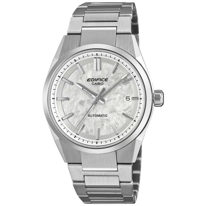 Model Edifice EFK-110D-7AER to automatyczny zegarek męski ze stalową bransoletą i szafirowym szkłem, wyposażony w japoński mechanizm z rezerwą chodu do 42 godzin. Model wyróżnia się kopertą 38 mm, jasną, teksturowaną tarczą oraz sportowo-eleganckim designem inspirowanym motoryzacją. To propozycja dla osób, które szukają precyzyjnego zegarka Casio Edifice na co dzień – trwałego, czytelnego i dopracowanego w każdym detalu.