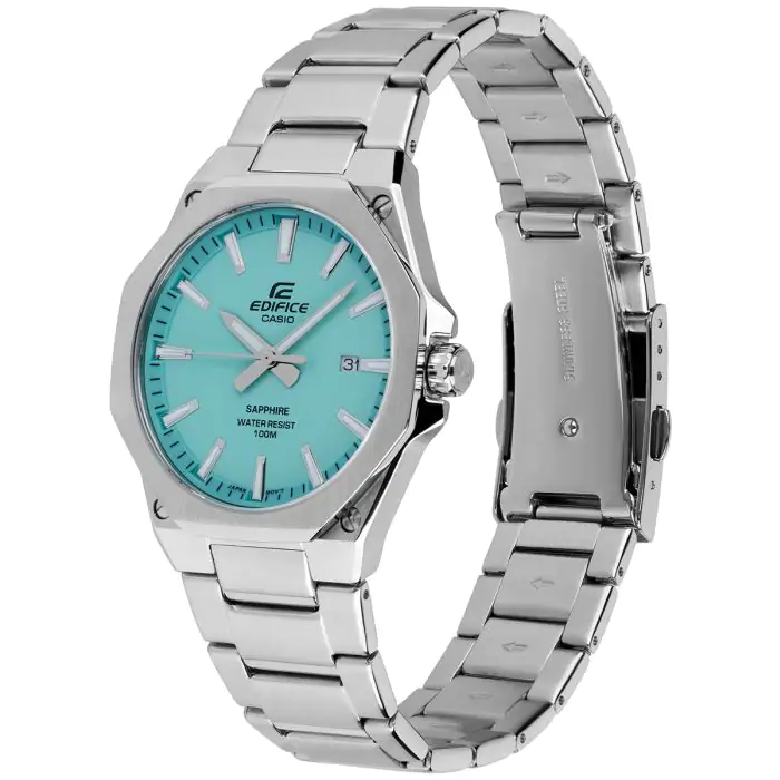 Zegarek męski Casio Edifice EFR-S108D-2BVUEF to nowoczesny i elegancki model, który łączy w sobie wysoką jakość wykonania i zaawansowaną technologię. Charakterystyczna tarcza w mocnym kolorze ,,Tiffany blue" sprawi, że wyróżnisz się z tłumu. Jest to zegarek idealny dla mężczyzn, którzy cenią sobie precyzję i styl.