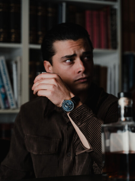 Na niebieskiej tarczy tego męskiego zegarka umieszczono zdobienia w postaci małych, nieregularnie rozmieszczonych, srebrnych gwiazdek. Subtelne srebrne wskazówki ułatwiają odczyt analogowy. Zegarek posiada datownik wskazujący miesiąc oraz dni tygodnia i miesiąca. Ma on także funkcję umożliwiającą śledzenie faz księżyca.
