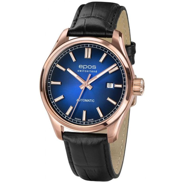 Klasyczny zegarek Epos na czarnym skórzanym pasku posiada poziom wodoszczelności oszacowany na 100 m. Bez przeszkód możesz w nim pływać czy uprawiać snorkeling – czasomierz jest odporny na pełne zanurzenie w wodzie.