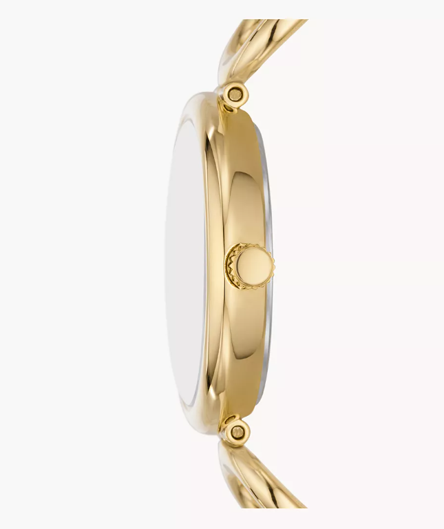 Okrągła koperta zegarka w złotym kolorze doskonale komponuje się z srebrną tarczą, tworząc harmonijną całość. Wykonana ze stali szlachetnej koperta jest odporna na działanie czynników zewnętrznych, a także na drobne zachlapania. Biżuteryjna stalowa bransoleta z zapięciem typu H nie tylko nadaje zegarkowi elegancji, ale także zapewnia regulację obwodu, co przekłada się na komfort użytkowania.