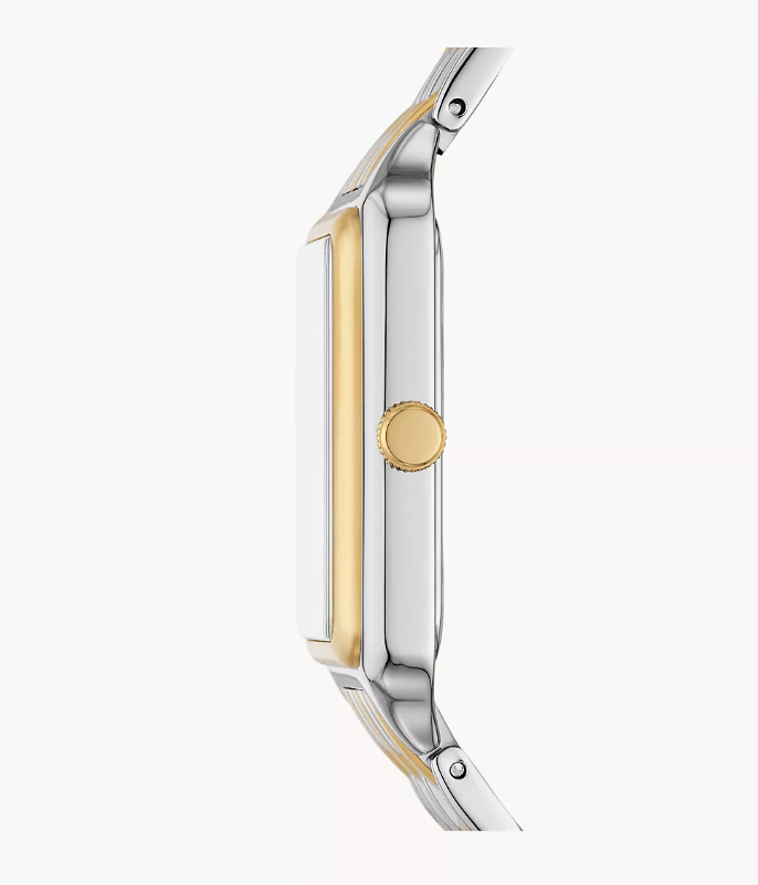 Prostokątna koperta w kolorze srebrnym z delikatnym złotym odcieniem prezentuje się wyjątkowo elegancko. Solidna stalowa konstrukcja oraz wodoszczelność na poziomie 50 m pozwalają na bezpieczne korzystanie z zegarka w codziennych sytuacjach. Bransoleta z tego samego materiału gwarantuje wygodę noszenia i jest łatwa do regulacji, co zapewnia komfort dopasowania do nadgarstka.