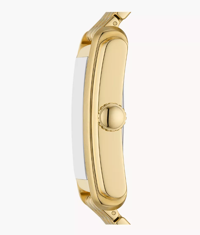 Złota stalowa koperta w kształcie prostokątnym nadaje zegarkowi charakteru i elegancji. Dzięki wodoszczelności na poziomie 5 ATM, zegarek może być bezpiecznie używany podczas codziennych aktywności, takich jak mycie rąk czy kąpiel. Uniwersalny kolor złoty koperty podkreśla klasyczny styl, a solidna stalowa obudowa gwarantuje trwałość.