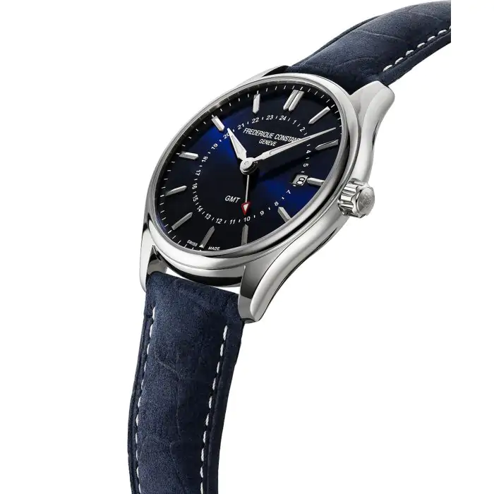 Frederique Constant Classics Quartz GMT to męski zegarek na pasku, który odznacza się swoją doskonałą precyzją. Koperta zegarka wykonana jest ze stali szlachetnej o polerowanej i matowej powierzchni, dzięki czemu czasomierz jest wyjątkowo trwały i odporny na korozję.