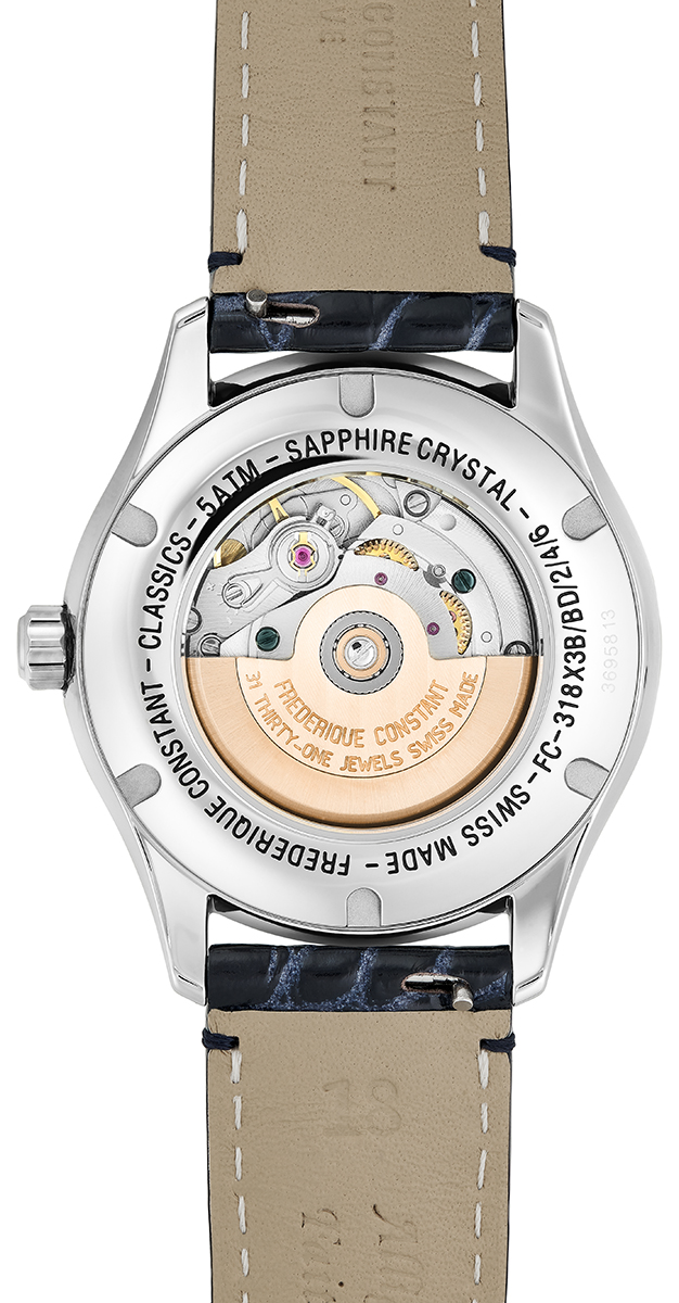 Zegarek Frederique Constant Ladies Automatic Small Seconds charakteryzuje się wodoszczelnością na poziomie 50 metrów (5 ATM). Klasa 5 atmosfer pozwala na swobodne wejście pod prysznic lub kąpiel na powierzchni wody.