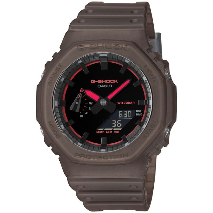 G-Shock GA-2100K -5AER w wersji analogowo-cyfrowej to niezawodny zegarek męski stworzony dla osób prowadzących aktywny tryb życia. Model z kultowej kolekcji G-SHOCK CLASSIC łączy charakterystyczną dla serii odporność na wstrząsy z czytelnym połączeniem tradycyjnych wskazówek i cyfrowego wyświetlacza. Brązowa koperta, czarna tarcza i brązowy pasek nadają zegarkowi nowoczesny, outdoorowy charakter, idealny zarówno do sportu, jak i codziennego użytkowania.