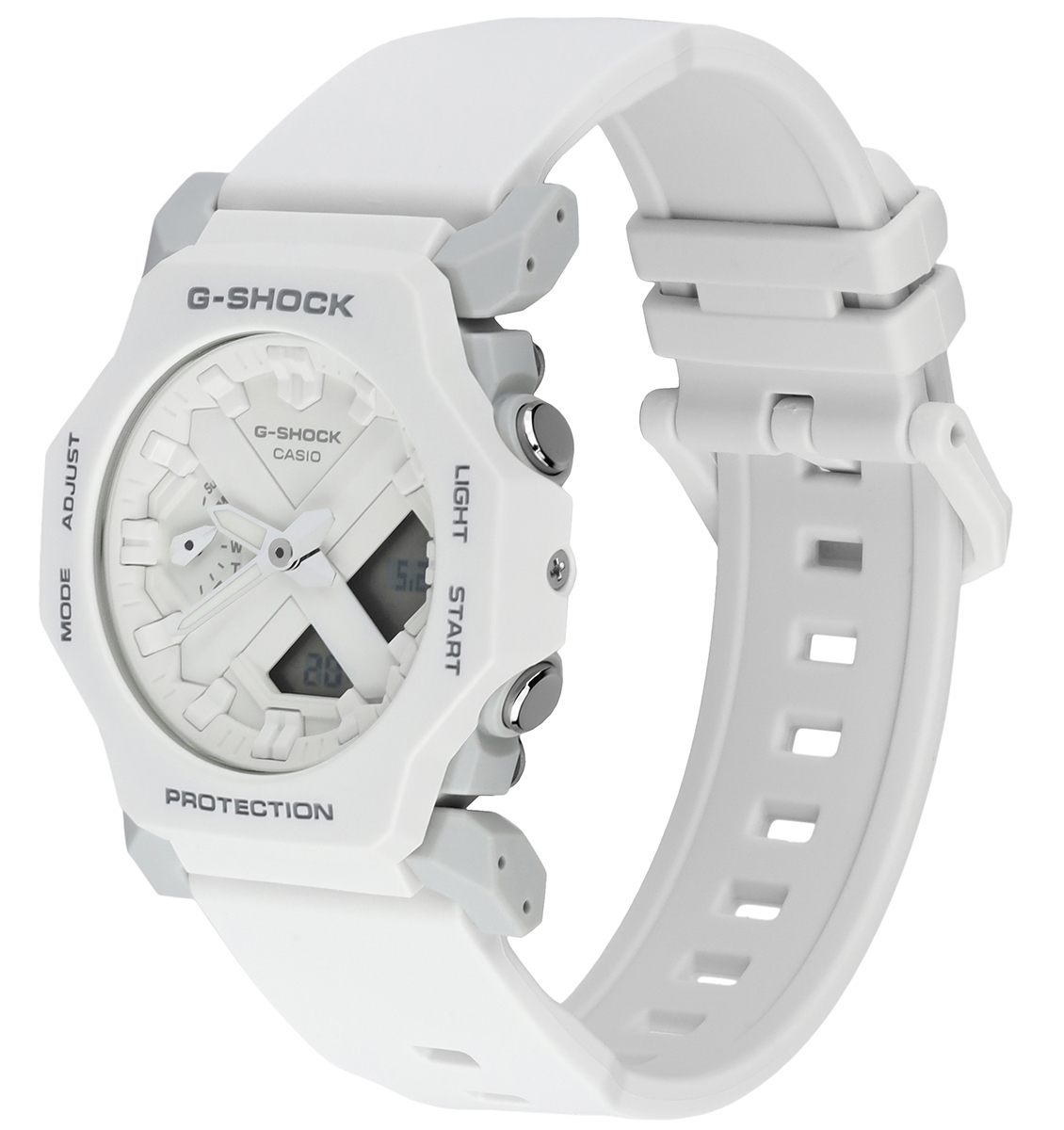 Tarcza zegarka GA-2300-7AER została zaprojektowana z myślą o maksymalnej funkcjonalności i czytelności. Dzięki funkcji Super Illuminator, możliwe jest jaskrawe podświetlenie tarczy nawet w ciemności, a powłoka Neobrite na wskazówkach zapewnia delikatne świecenie tarczy. Tarczę chroni szkło mineralne, które dzięki swojej odporności na uderzenia doskonale sprawdza się w wymagających warunkach użytkowania, zachowując dobrą przejrzystość i trwałość.