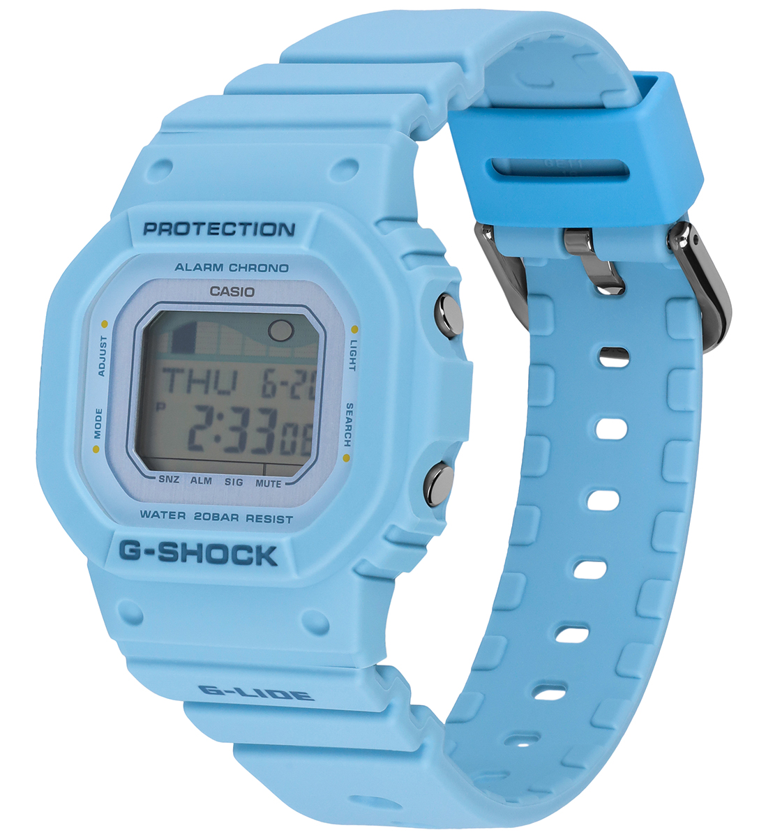 CASIO G-SHOCK GLX-S5600-2ER to wyjątkowy zegarek sportowy zaprojektowany z myślą o osobach aktywnych, a szczególnie fanach sportów wodnych. Model ten wyróżnia się nie tylko typową dla serii G-SHOCK odpornością na wstrząsy, ale także funkcjami takimi, jak wykres pływów czy wskaźnik faz księżyca. Kompaktowy, lekki i niezwykle wytrzymały – idealny zarówno na co dzień, jak i w wymagających warunkach. GLX-S5600-2ER łączy styl, praktyczność i niezawodność w jednej formie