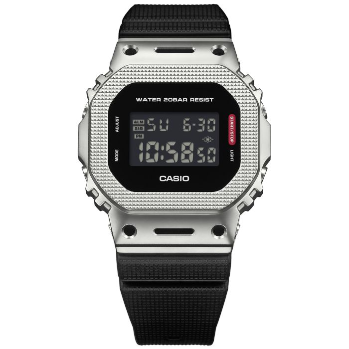 Cyfrowy wyświetlacz GM-5600M-1ER oferuje maksymalną przejrzystość i błyskawiczny dostęp do danych – godziny, daty, alarmu czy czasu stoperowego. Chroniony przez mineralne szkło, ekran pozostaje odporny na zarysowania. Podświetlenie umożliwia korzystanie z zegarka w ciemności – niezależnie od sytuacji.