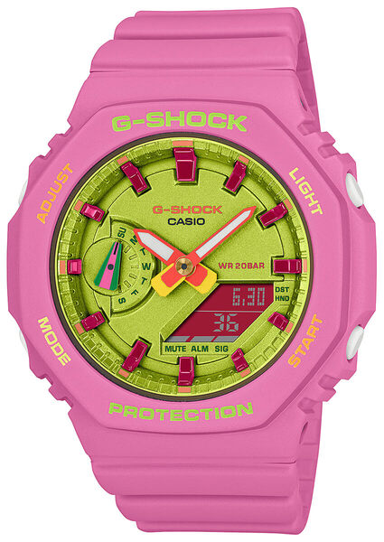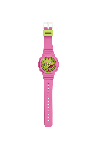 Różowa koperta GMA-S2100BS-4AER wykonana jest z trwałego materiału carbonowego, który gwarantuje lekkość, wytrzymałość i odporność na uszkodzenia mechaniczne. Wodoszczelność na poziomie 200 metrów (20 barów) sprawia, że zegarek jest idealnym towarzyszem podczas pływania i nurkowania. Pasek zegarka wykonany jest z wytrzymałego tworzywa sztucznego, które nie przeszkadza w kontakcie z wodą. Sprzączka na pasku umożliwia łatwe dopasowanie do nadgarstka.