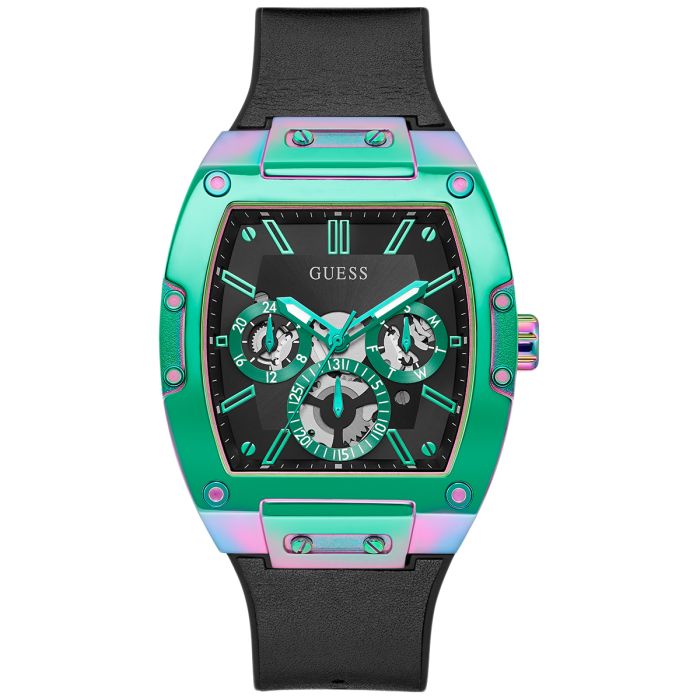 Męski zegarek typu Fashion, model Guess Phoenix GW0202G5 to wyjątkowy dodatek do stroju, skierowany ku wielbicielom neonowych wykończeń i przyciągających wzrok czasomierzy. Kwadratowa koperta, niezawodny kwarcowy mechanizm, oraz hybrydowy pasek uczynią ten zegarek doskonałym wyborem dla mężczyzn poszukujących akcesorium które podkreśli ich charakter.