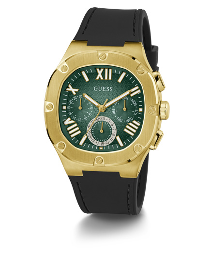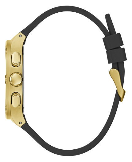 Zegarek GUESS GW0571G3 jest wyposażony w wygodny pasek z czarnego tworzywa sztucznego, który zapewnia komfort noszenia i dopasowanie do nadgarstka.