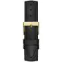 Koperta tego zegarka zachwyca złotym blaskiem i detalami w postaci cyrkonii, co dodaje mu wyjątkowej elegancji. Okrągły kształt koperty oraz jej średnica 36 mm sprawiają, że zegarek doskonale prezentuje się na kobiecym nadgarstku. Pasek wykonany z czarnej skóry naturalnej jest nie tylko wygodny, ale również dodaje klasy i podkreśla stylowy charakter zegarka.
