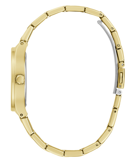 Tarcza Guess GW0615L2 w kolorze żółtego złota nawiązuje do klasycznego i wyrafinowanego stylu. Prosta forma odczytu czasu za pomocą wskazówek dodaje zegarkowi elegancji. Elastyczne szkło mineralne chroni tarczę przed stłuczeniami, utrzymując ją w doskonałym stanie.