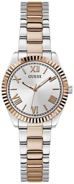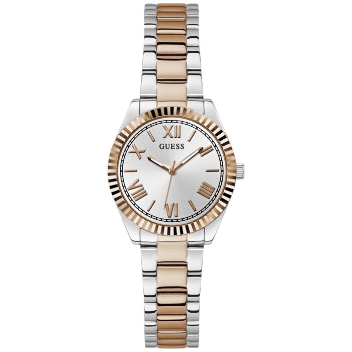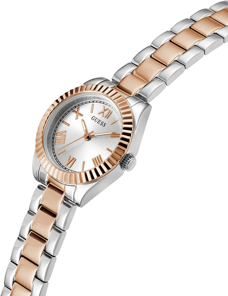 Srebrna koperta zegarka GUESS GW0687L3 w połączeniu z różowo-złotą bransoletą tworzą harmonijną całość, która podkreśla elegancję i wyjątkowość tego czasomierza. Wykonane z wysokiej jakości materiałów zapewniają trwałość i komfort noszenia.