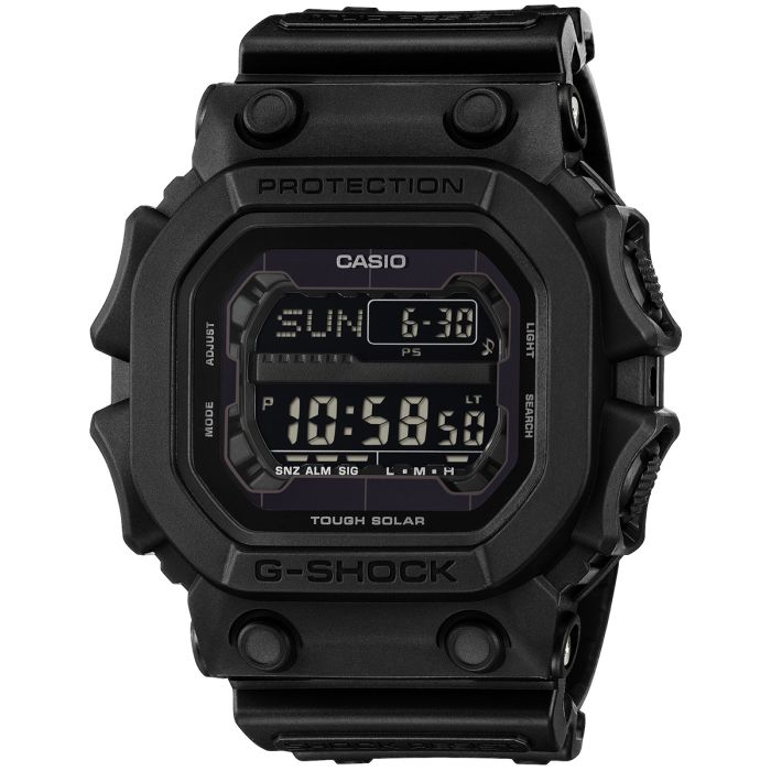 G-SHOCK GX-56UBB -1ER to zegarek męski stworzony z myślą o maksymalnej wytrzymałości, funkcjonalności i aktywnym stylu życia. Model z legendarnej kolekcji G-SHOCK CLASSIC łączy sportowy design z nowoczesną technologią solarną, gwarantując niezawodność w każdych warunkach. Czarna koperta, czarny wyświetlacz oraz czarny pasek tworzą jednolitą, taktyczną stylistykę, idealną zarówno do codziennego noszenia, jak i ekstremalnych aktywności.