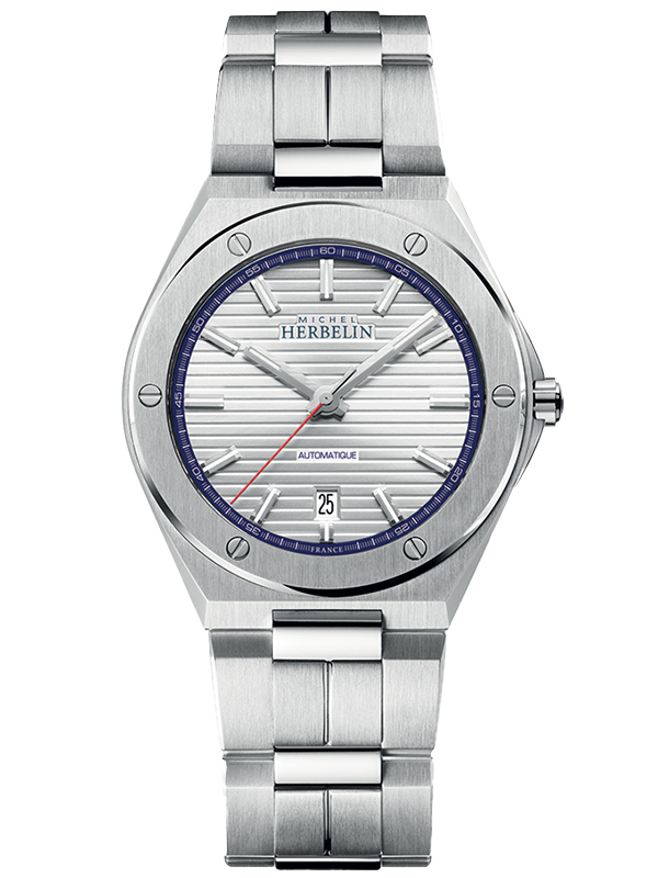 Koperta oraz bransoleta tego zegarka męskiego z datownikiem Herbelin Cap Camarat zostały wyprodukowane ze stali szlachetnej 316 L. Materiał ten odznacza się dużą wytrzymałością na działanie czynników zewnętrznych, takich jak korozja. Obydwa elementy zostały zachowane w srebrnej barwie. Przeszklony dekiel koperty pozwala na podglądanie precyzyjnej pracy mechanizmu.