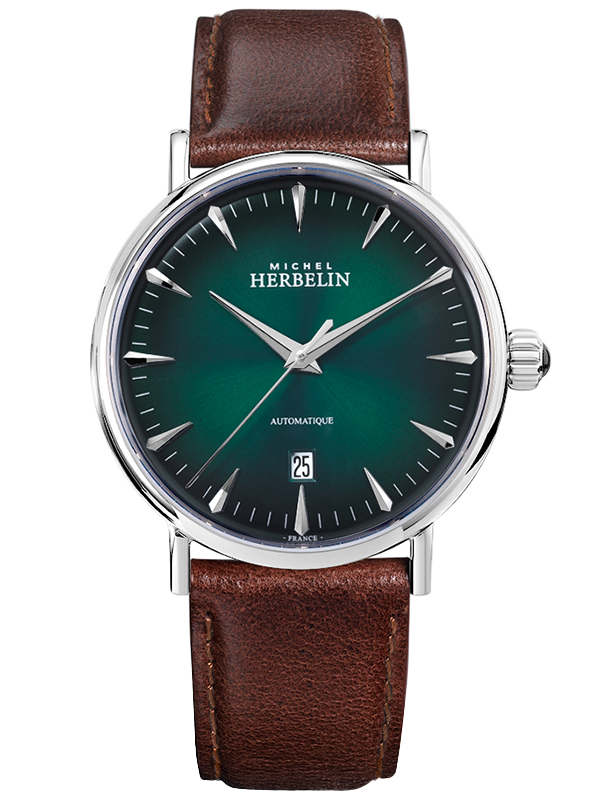 HERBELIN 1647/AP16BR to klasyczny zegarek męski, który idealnie sprawdzi się jako dodatek do codziennych stylizacji. Wzrok przyciąga cyferblat w obłędnym kolorze morskiej zieleni ze szlifem słonecznym. Umieszczony w jego wnętrzu szwajcarski mechanizm gwarantuje precyzyjną pracę urządzenia.