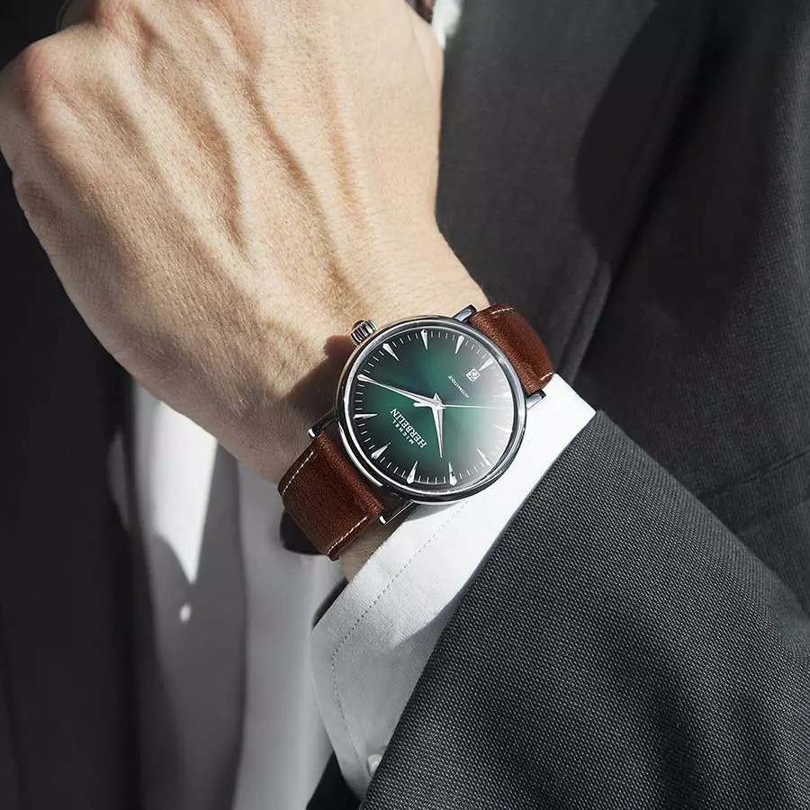 Tarcza tego automatycznego zegarka męskiego ma barwę morskiej zieleni. Na jej tle wyróżniają się wyraziste srebrne indeksy. Stylizowane wskazówki dodają jej charakteru. Na godzinie szóstej umieszczono datownik informujący o aktualnym dniu miesiąca. Nad tarczą znajduje się szkło szafirowe. Twardością przewyższa je jedynie diament, co czyni powierzchnię czasomierza niemal niemożliwą do zarysowania.