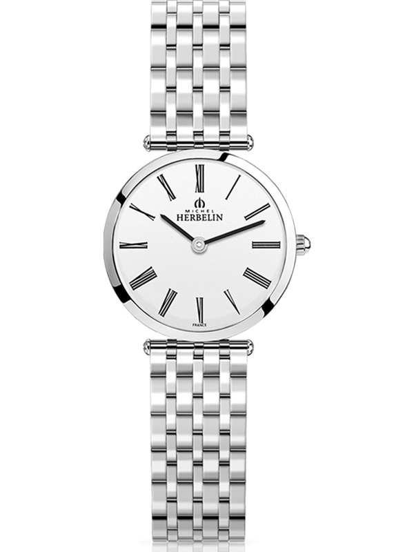 Koperta oraz bransoleta zegarka damskiego Herbelin zostały wykonane ze stali szlachetnej 316 L. Charakteryzuje ją duża odporność na działanie czynników zewnętrznych, np. korozji. Godną uwagi cechą stali jest jej hipoalergiczność, co czyni ją bezpieczną dla osób o wrażliwej skórze. Koperta oraz bransoleta mają srebrną barwę, która idealnie komponuje się z białą tarczą czasomierza.
