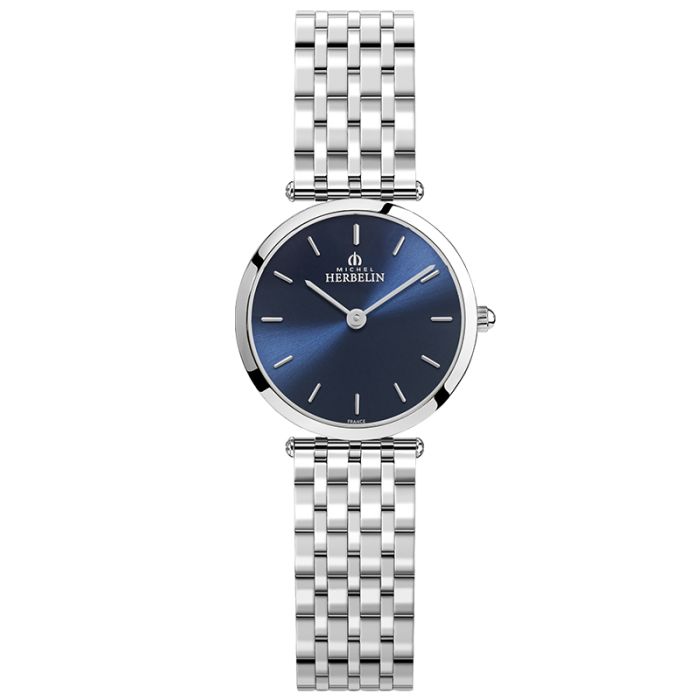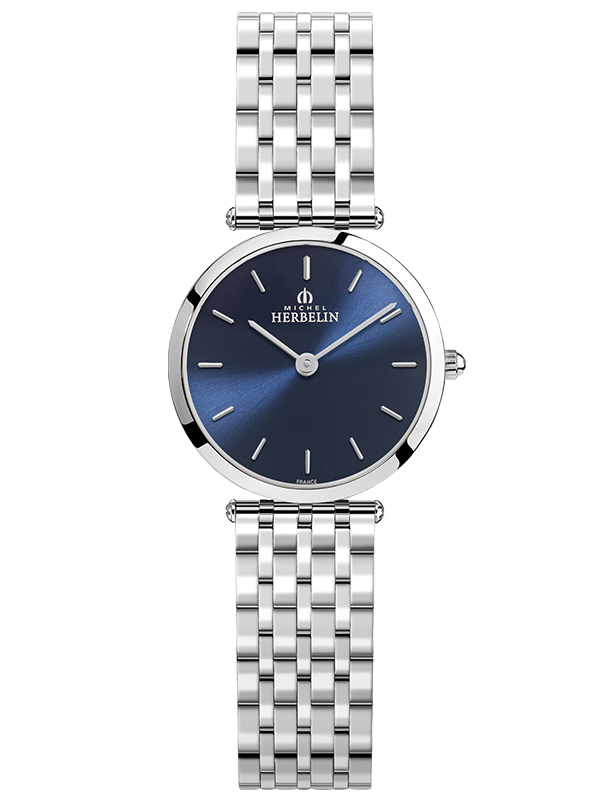 Lśniąca tarcza tego zegarka damskiego Herbelin ma granatowy kolor. Zostały na niej umieszczone subtelne srebrne indeksy. Stylizowane wskazówki dodają jej charakteru. Do ochrony tarczy wykorzystano odznaczające się niezwykłą odpornością na zarysowania szkło szafirowe. Dzięki temu powierzchnia czasomierza będzie zachwycać nienagannym wyglądem pomimo lat użytkowania.