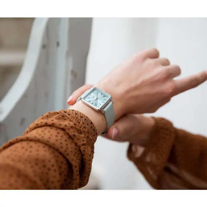 Hornavan HO30342030210 to przedstawiciel kolekcji Host, która jest skierowana do szykownych kobiet. Charakteryzuje ją kwadratowa koperta i modny, wygodny pasek skórzany. Koperta tego modelu została wykonana z odpornej na warunki atmosferyczne stali szlachetnej, którą pokryto powłoką IP w kolorze srebra. W połączeniu z paskiem w miętowym kolorze tworzy spójną całość. Na minimalistycznej tarczy umieszczono wskazówki wyróżniające się na tle miętowego cyferblatu. Tarczę wraz z japońskim mechanizmem zabezpieczono szkłem mineralnym, które posiada zwiększoną odporność na stłuczenia. Wodoszczelność tego modelu określono jako 30M co znaczy, że nie zaszkodzą mu zachlapania powstałe na przykład podczas mycia rąk.