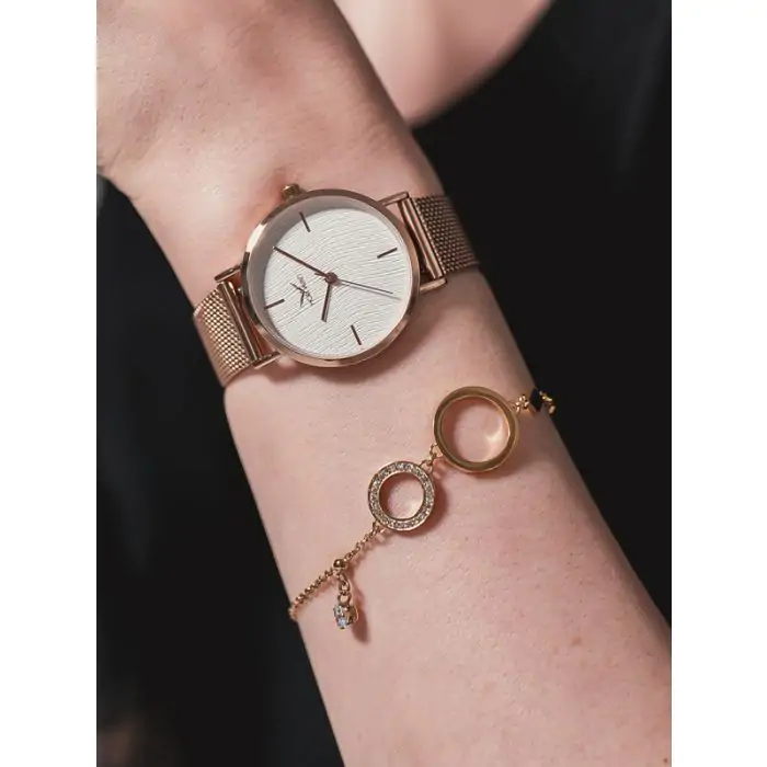 Hornavan SA311000330 to przedstawiciel kolekcji Salla, która jest skierowana do pewnych siebie kobiet. Charakteryzuje ją nowoczesny i modny design. Cechą wyróżniającą ten model jest jego niezwykła, marmurowa tarcza, która przypomina taflę jeziora Hornavan. Koperta tego modelu została wykonana z odpornej na warunki atmosferyczne stali szlachetnej, którą pokryto powłoką IP. W połączeniu ze stalową bransoletą typu mesh tworzy spójną, elegancką całość. Na minimalistycznej tarczy umieszczono wskazówki kontrastujące z jasnym cyferblatem. Tarczę wraz z japońskim mechanizmem zabezpieczono szkłem mineralnym, które posiada zwiększoną odporność na stłuczenia. Wodoszczelność tego modelu określono jako 30M co znaczy, że nie zaszkodzą mu zachlapania powstałe na przykład podczas mycia rąk. Dzięki możliwości szybkiej wymiany bransolety/paska można bez większego wysiłku dostosować czasomierz do aktualnej kreacji.